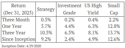 Over the five years the strategy has been managed, we have seen a variety of environments. Across these varied environments, the Strategy has returned 9.2% since inception (net of all fees), despite a higher-quality credit focus.